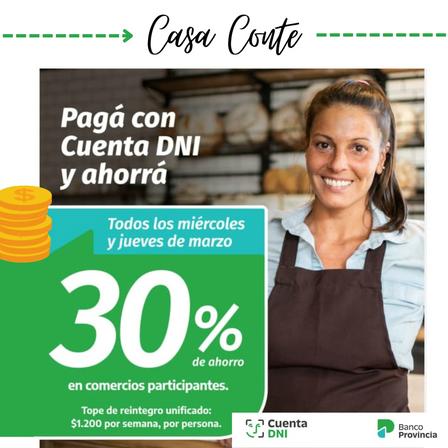 Casa Conte tiene 30 % de descuento con Cuenta DNI