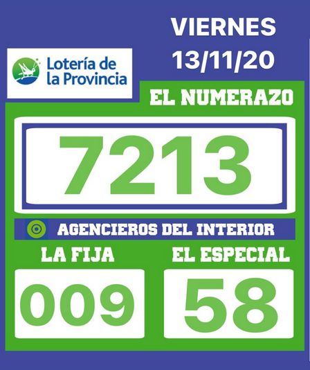 El número especial del día de hoy, viernes 13 de noviembre, es el 58, la fija el 009 y el numerazo el 7213.