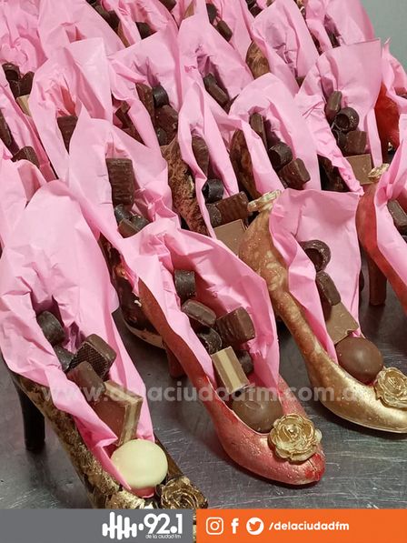 Son zapatos de chocolate que cuentan con una presentación especial y varios chocolates en su interior.