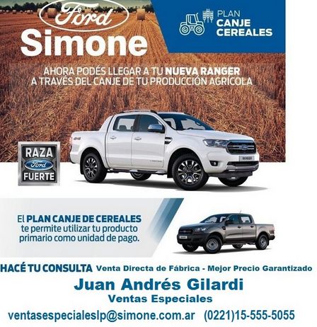 Las consultas pueden hacerse con el representante de Pigüé y la zona Juan Carlos López, al celular 11 25 58 30 63, al mail Esta dirección de correo electrónico está siendo protegida contra los robots de spam. Necesita tener JavaScript habilitado para poder verlo., o en el portal www.jclopez.com.ar