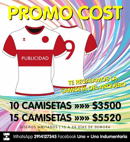 En Uno más Uno Indumentaria la misma promoción rige para 15 casacas por 5.520 pesos más la remera del arquero de regalo.