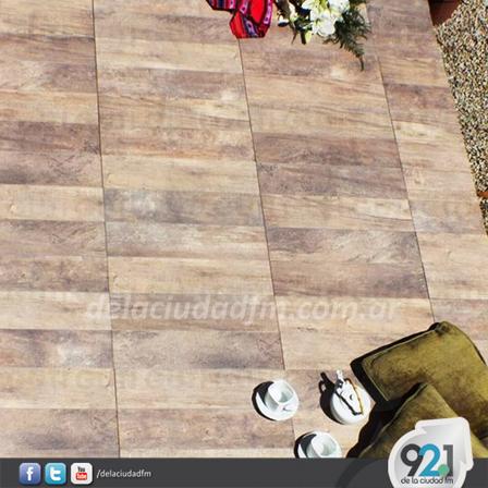 El piso cerámico modelo madera lenga cuesta 145 pesos el metro cuadrado en el salón de calle Ruperto Tanco esquina Diagonal Misiones.