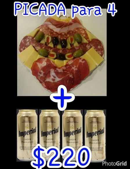 Solo por hoy puede conseguirse una picada para 4 personas más 4 latas de cerveza Imperial a 220 pesos.