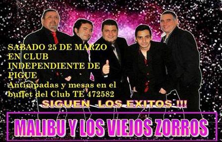 El sábado, en el Gimnasio Francisco Cervera, se hará el baile con Malibú y Los Zorros Viejos.
