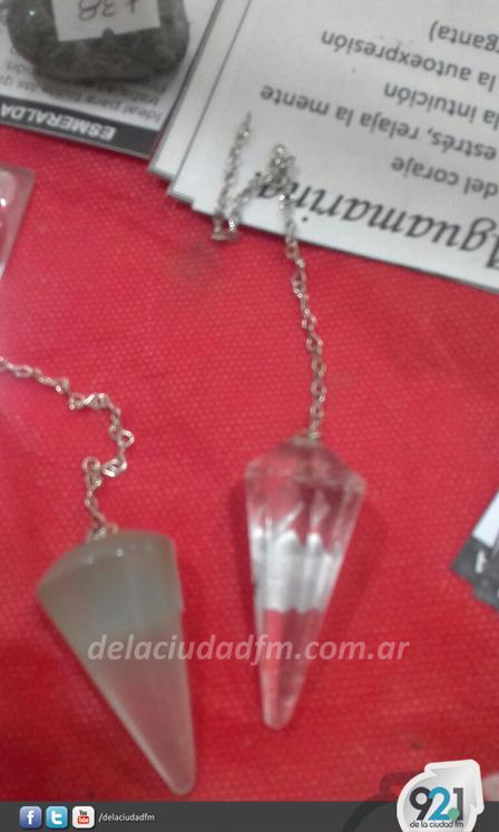 Estampitas de santos, péndulos de piedras, y artículos para defumación sueltos para la limpieza energética pueden conseguirse en el local de calle Ciudad de Rodez de Pigüé.