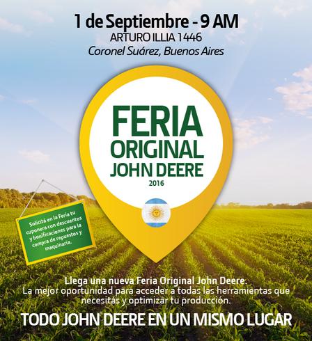 El 1º de septiembre, a las 9.00 horas, se hará la Feria Original John Deere en Arturo Illia 1.446 de Coronel Suárez.