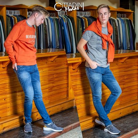 El buzo de algodón frizado con estampa marca Laser cuesta $ 4590, el jean elastizado chupin marca Bando con pequeñas roturas está a $ 4990, la remera de algodón y lycra con estampa de la marca Puebla está a $ 2200, y las zapatillas Jaguar a $ 4790.