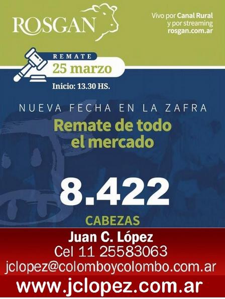 Colombo y Colombo, para el remate Rosgan del jueves, da a conocer 8.422 vacunos registrados para el remate televisado.