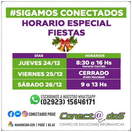 Por las fiestas el día 24 de diciembre, al igual que 31 del mismo mes, atienden al público de 7:30 de la mañana a 13.00 horas, y de 15:30 a 19.00 horas.