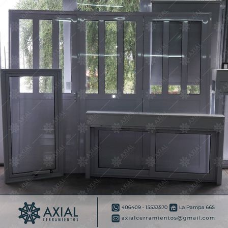 Axial Cerramientos trabaja en la fabricación de portones plegadizos, ventiluces, puertas y ventanas de distintos colores.
