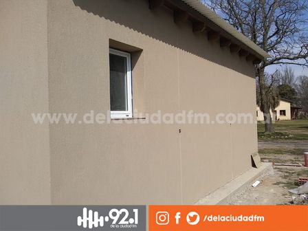 Pueden verse ya los trabajos sobre una viviendas, con color Nuez de Venezia, que fue revestida por estas horas.
