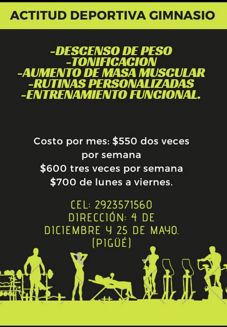 Las consultas, en AD Actitud Deportiva Gimnasio, pueden hacerse al 2923 57 15 60.