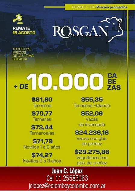 Colombo y Colombo dio a conocer los precios promedios del último Rosgan