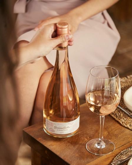 Se trata de una propuesta, en vino, con un característico color salmón, perfil floral con delicados aromas a frutos secos, con sabores a grosellas y frutillas con una distintiva frescura y una jugosa acidez.