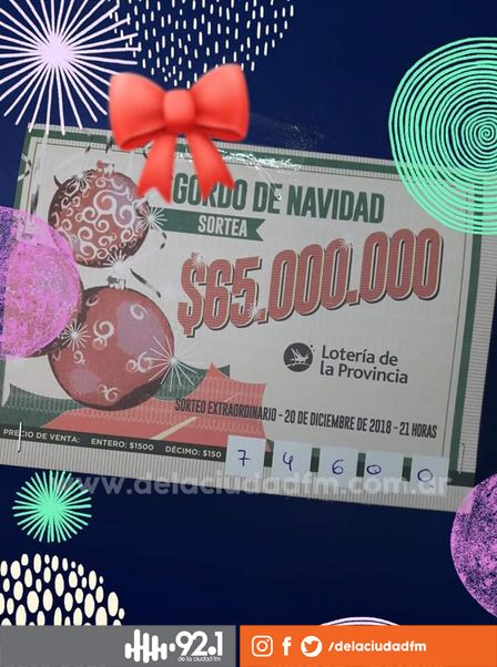 65 millones de pesos el pozo especial que tiene el sorteo del Gordo de Navidad.