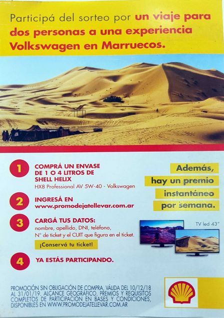 Un premio instantáneo por semana, viajes a Marruecos, y más premios están disponibles en la nueva promo de Shell.