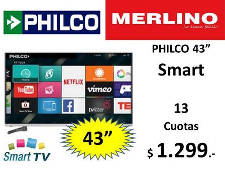 Ahora el Smart TV Philco de 43 pulgadas puede conseguirse en 13 cuotas de 1.299 pesos.