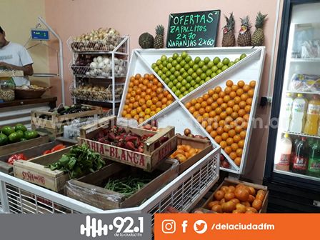 Dos kilos de zapallitos cuestan 70 pesos, dos kilos de bananas salen 70 pesos, y dos kilos de naranjas están a 60 pesos.