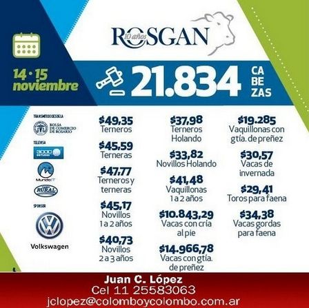 La Consignataria comunica la fecha para el próximo Rosgan: 12 y 13 de Diciembre. Anote su consignación con anticipación. Ya estamos filmando.