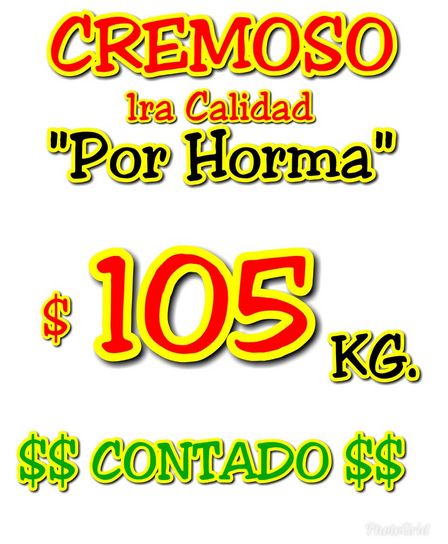 El queso cremoso, por kilo, por horma, tiene un valor de 105 pesos de contado.