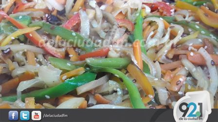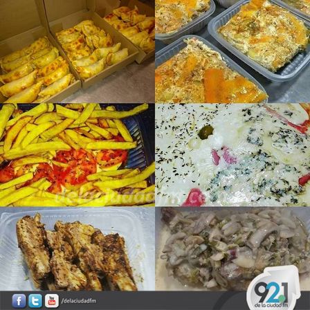 Hoy, jueves, en Alem esquina Washington, cocinan pollo al horno, puré de calabazas, berenjenas rellenas, hamburguesas de arroz yamaní, y wok de vegetales.