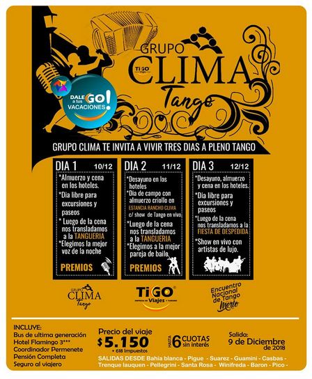 El Grupo Clima Tango está organizando el Encuentro Nacional del Tango en Villa de Merlo para el 9 de diciembre próximo.