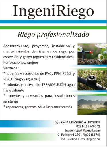 IngeniRiego está en Carlos Pellegrini 156 de Pigüé.
