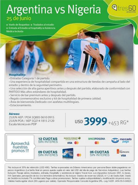 En Vacaciones Tres60 ya están los paquetes para el Mundial de Brasil con entradas incluidas.