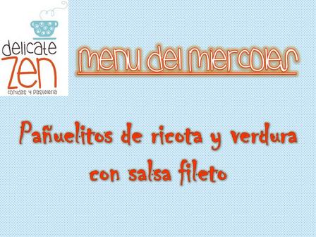 Este mediodía, y por la noche, Delicate Zen, estará cocinando pañuelitos de ricota y verdura con salsa fileto.