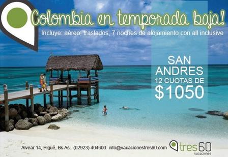 Según le indicaron a FM de la Ciudad viajar a San Andrés puede tener un valor de 12 cuotas de $ 1.050 en Vacaciones Tres60.