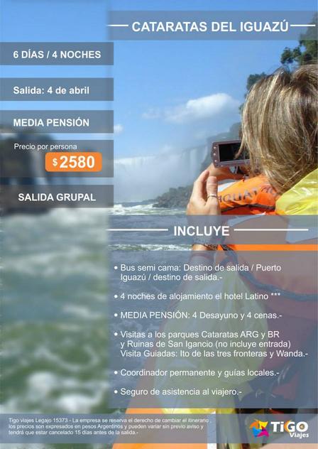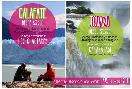 Durante el día de hoy Vacaciones Tres 60 continúa con la promoción especial para viajar tanto a Cataratas del Iguazó como a Calafate.