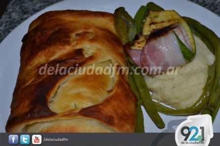 Según le indicaron a FM de la Ciudad en el salón se pudo saborear esta delicia del chef horneada, envuelta en hojaldre, con verdeo, puerro, berenjenas, y panceta.