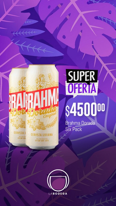 El pack de seis latas de Brahma Dorada tiene un costo de 4.500 pesos en los locales de La Bodega Vinotecas.