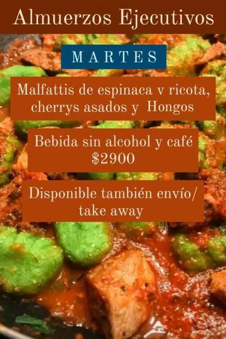 Fuego Sagrado Restaurant cocina malfattis de espinaca y ricota, con cherrys asados, y hongos