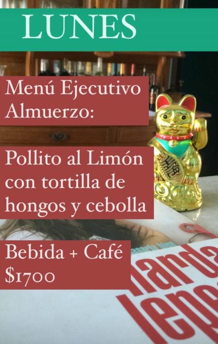 La propuesta para hoy consiste en pollo al limón, con tortilla de hongos y cebolla, más bebida sin alcohol y café a 1.700 pesos.