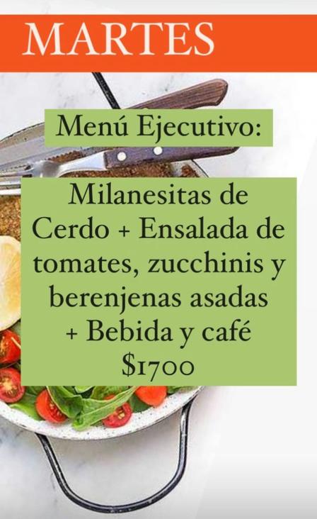 Milanesitas de cerdo con ensalada de tomates, zucchinis y berenjenas asadas, más bebida y café, pueden conseguirse a 1.700 pesos.