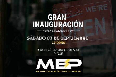 Movilidad Eléctrica Pigüé estará realizando una inauguración de su salón de ventas en la ciudad.