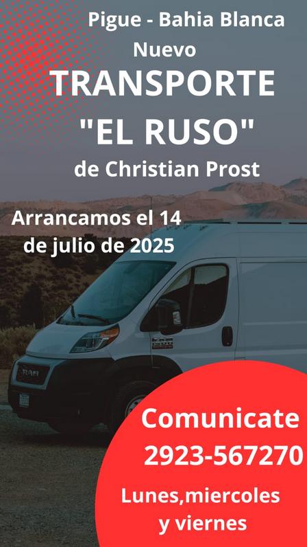 Transporte El Ruso, los días lunes, miércoles, y viernes, unirá Pigüé con Bahía Blanca previo contacto al 2923 56 72 70.