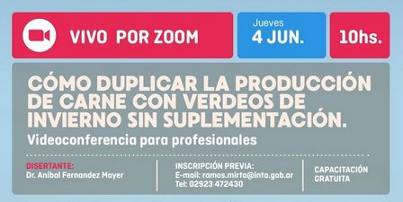 Desde las 10.00 horas, se hará la charla para profesionales titulada ‘Como duplicar la producción de Carne con Verdeos de Invierno sin suplementación’.
