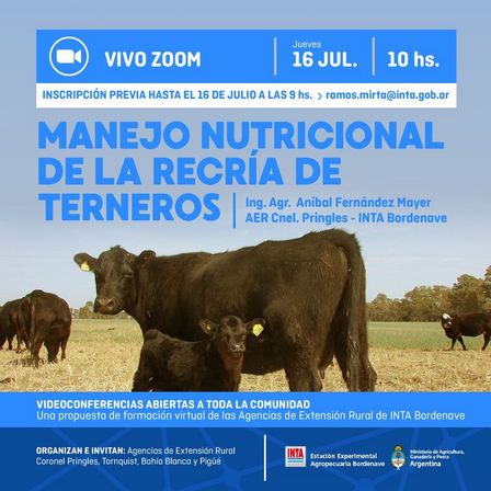 La charla sobre 'Manejo nutricional de la recría de terneros' es una propuesta de formación virtual de las Agencias de Extensión Rural de INTA Bordenave