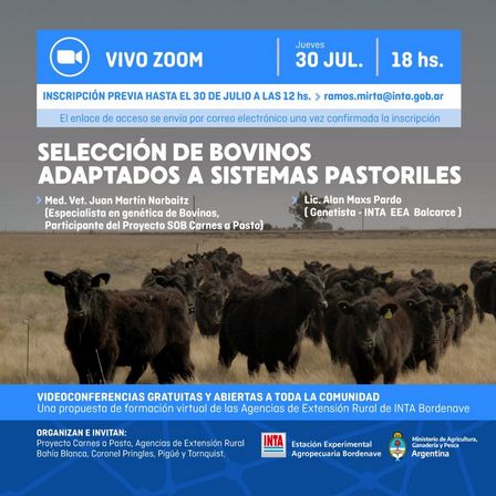 Programan charlas sobre ‘Selección de bovinos adaptados a sistemas pastoriles’