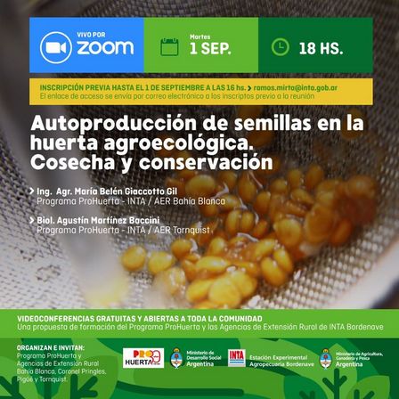 Se trata de una propuesta de formación virtual del Equipo de Pro Huerta y las Agencias de Extensión Rural de INTA Bordenave prevista para el martes 1º de septiembre a las 18.00 horas.