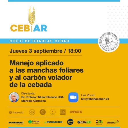 Esta vez sobre ‘Manejo aplicado a las manchas foliares y al carbón volador de la cebada’ hablará el Dr. Profesor Titular del Plenario de la Universidad de Buenos Aires Marcelo Carmona.