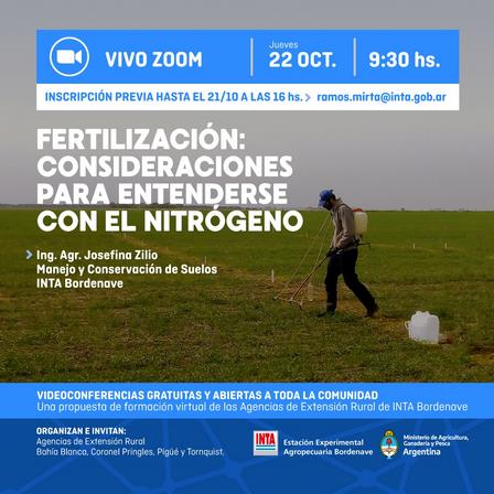 En el marco de la disertación titulada ‘Fertilización: consideraciones para entenderse con el nitrógeno’ la convocatoria se hará vía Zoom, el jueves 22 de octubre, desde las 9.30 horas.