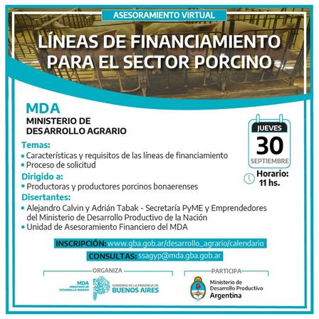 Darán asesoramiento virtual por líneas de financiamiento para el sector porcino