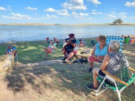 En el predio de Laguna Las Encadenadas hay guitarreadas y mate en la playa