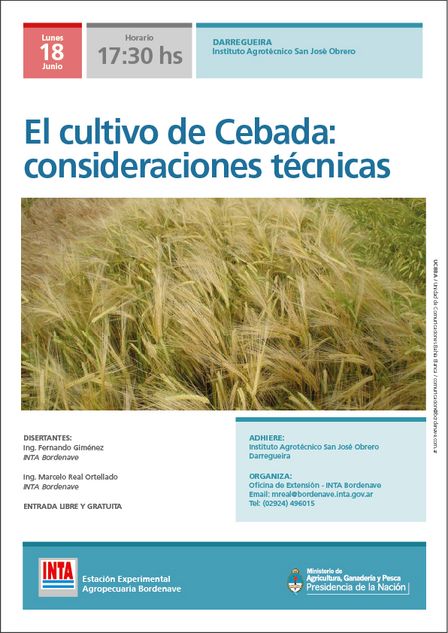 El INTA se encuentra organizando una jornada de capacitación titulada ‘El cultivo de cebada: consideraciones técnicas’.