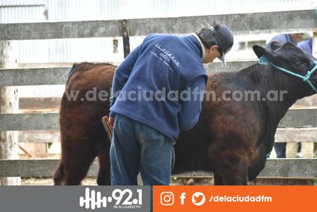 En los corrales de la Exposición Rural de Saavedra hubo trabajos sobre el pelaje de los Aberdeen Angus y los Hereford para dejarlos bien presentados.