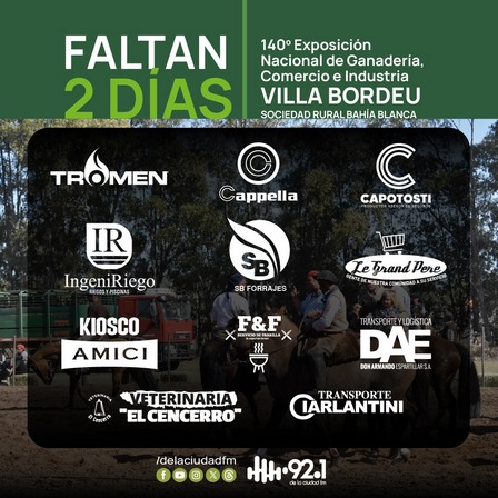 La 92.1 brindará una cobertura periodística de la Expo Rural Número 140 de Bahía Blanca.