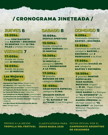 La Fiesta Nacional del Reservado será clasificatoria para el Festival de Jesús María, entregará el premio a la Mejor Tropilla, y estará siendo fecha oficial del Campeonato Argentino de Criadores.